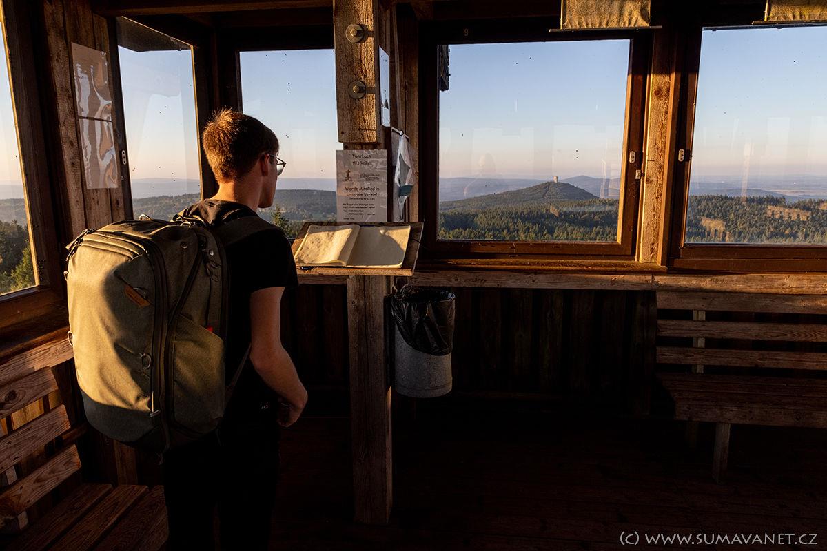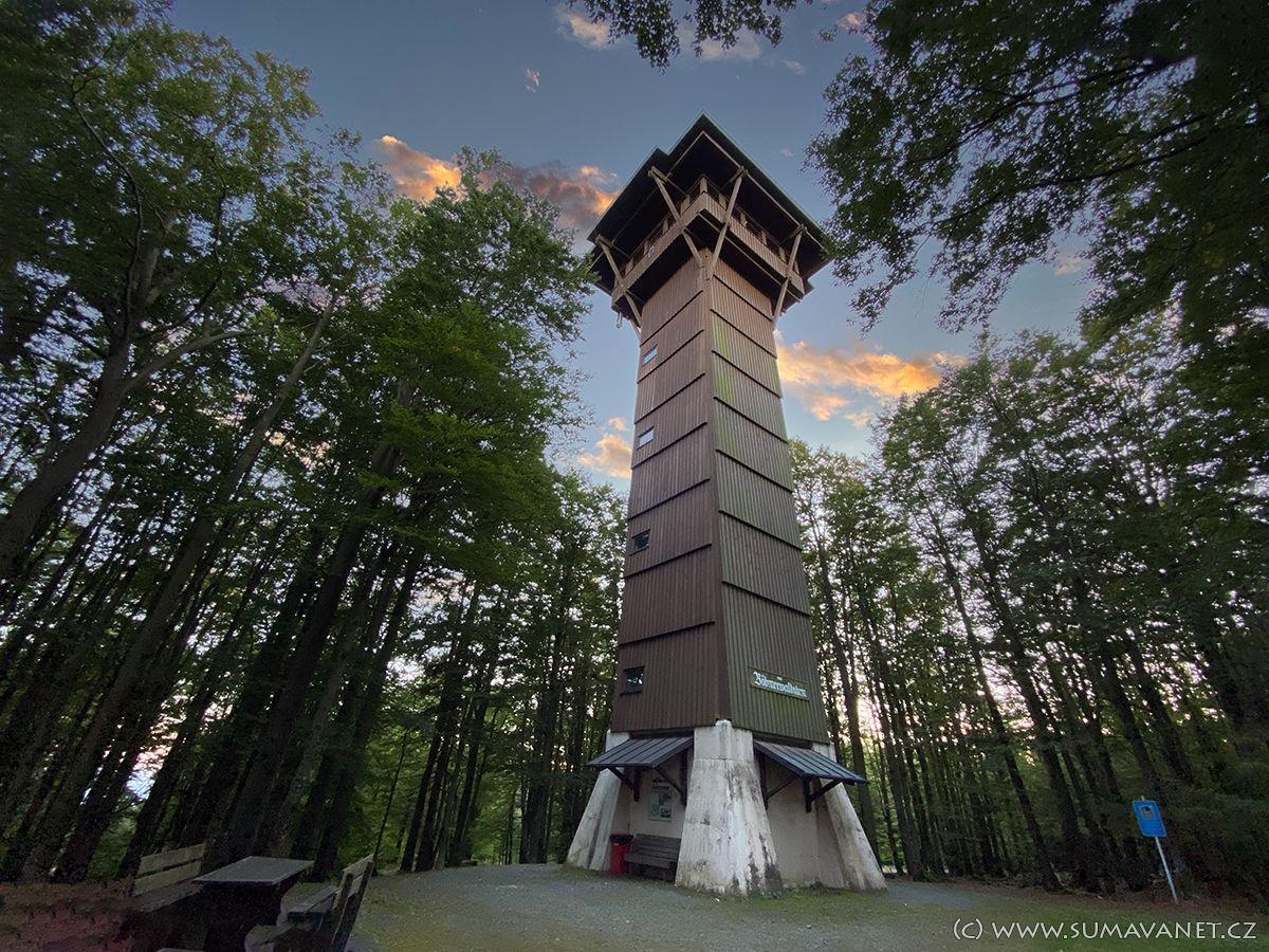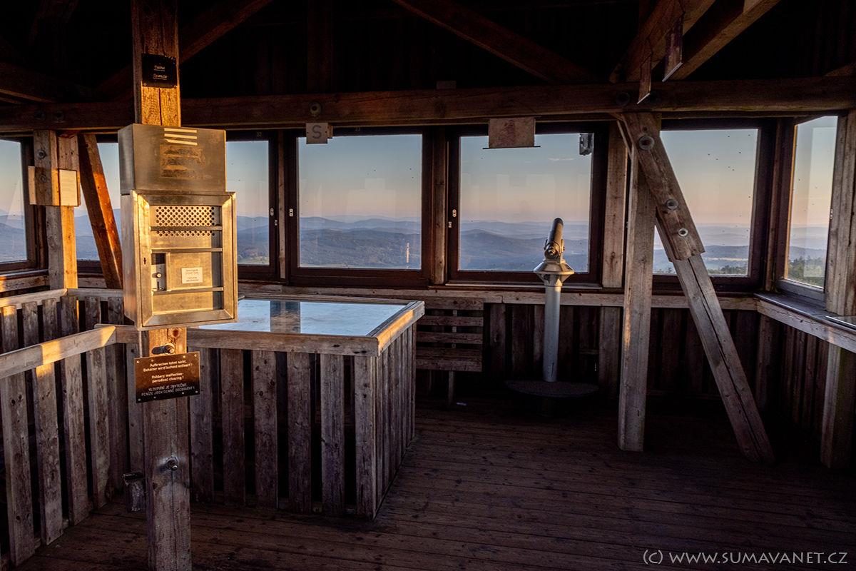 Z rozhledny se otevře nádherný výhled na Český les, Šumavu i Bavorský les. Nepřehlédnutelný je vrch Velký Zvon s vojenskou věží, na opačné straně je nádherně vidět Velký Javor u Železné Rudy. Vyhlídkové patro je zasklené a zastřešené, což je sice příjemné při chladnějších dnech, ale sklo výrazně znesnadňuje fotografování. Okolí je možno pozorovat pomocí nainstalovaných dalekohledů.